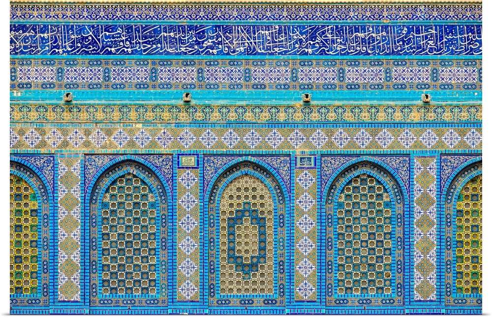 <p>Israel, Jerusalem District, Jerusalem, Detail Of Ornate Decorative Tile On The Exterior Of The Dome Of The Rock On Temple Mount.</p>