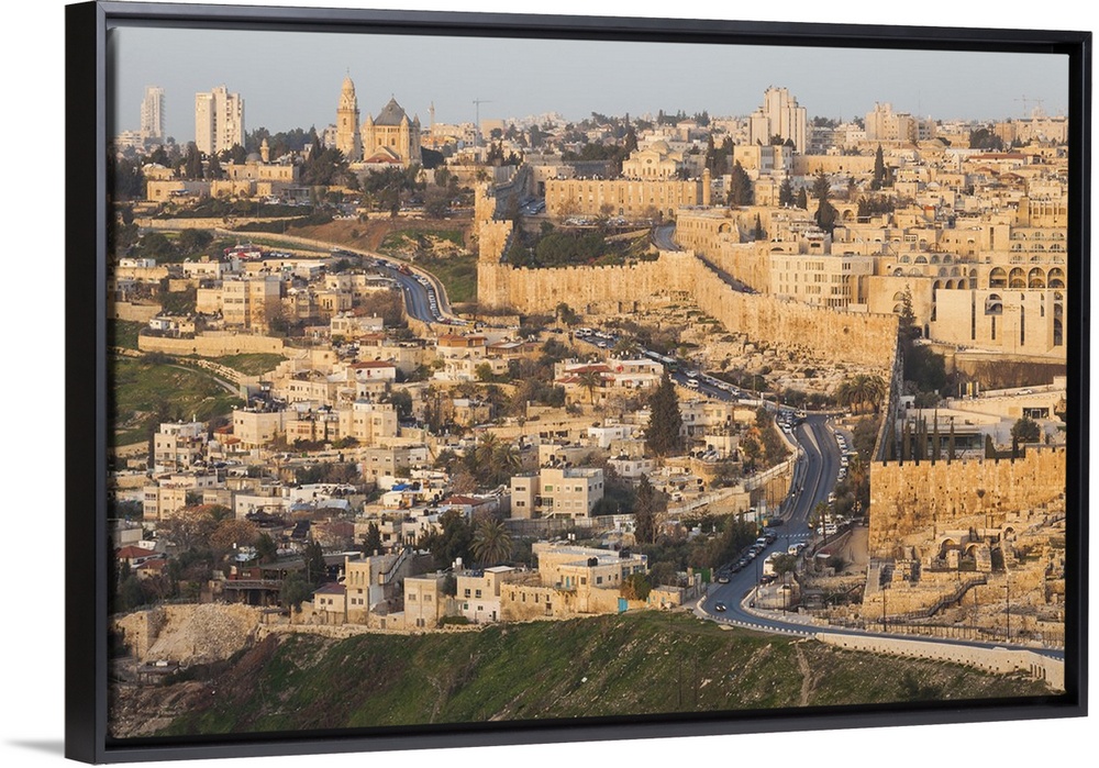 <p>Israel, Jerusalem, Old city wall at sunrise, seen from Olive Mount.</p>