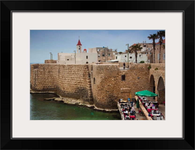 <p>Israel, North Coast, Akko-Acre, ancient city, waterfront cafe in city walls, NR</p>