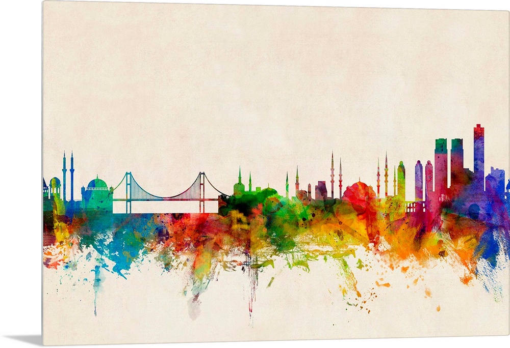 <p>Contemporary piece of artwork of the Istanbul skyline made of colorful paint splashes.</p>