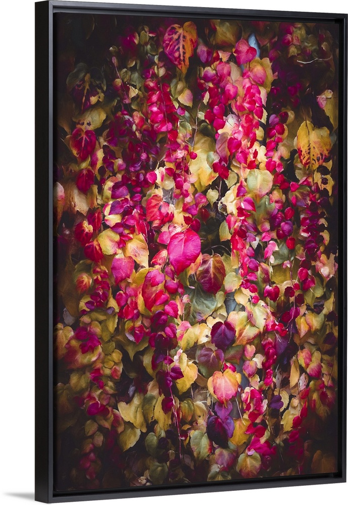 <p>Vibrant foliage in a kaleidoscope of colors, including shades of pink, purple, and green, creates a lush, cascading effect. The play of light and shadow enhances the depth and richness of the leaves, suggesting a sense of movement and life.</p>