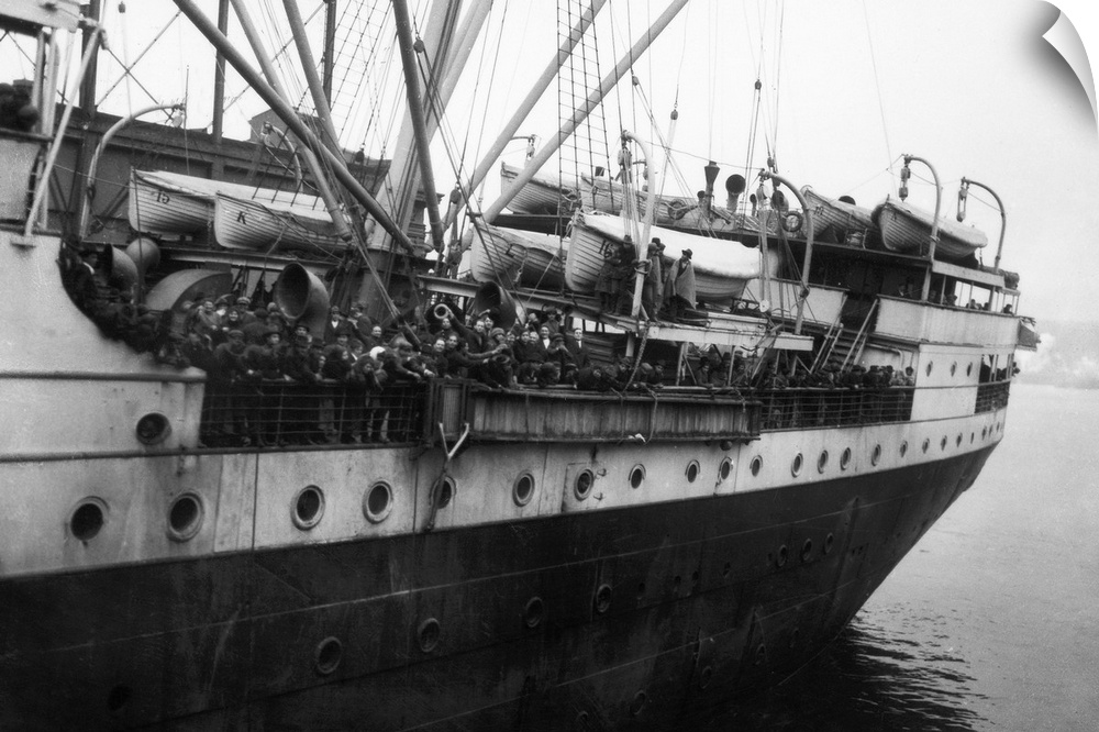 <p>Italian immigrants arriving at Ellis Island aboard the S.S. Regina d'Italia. Photograph, 1921.</p>
