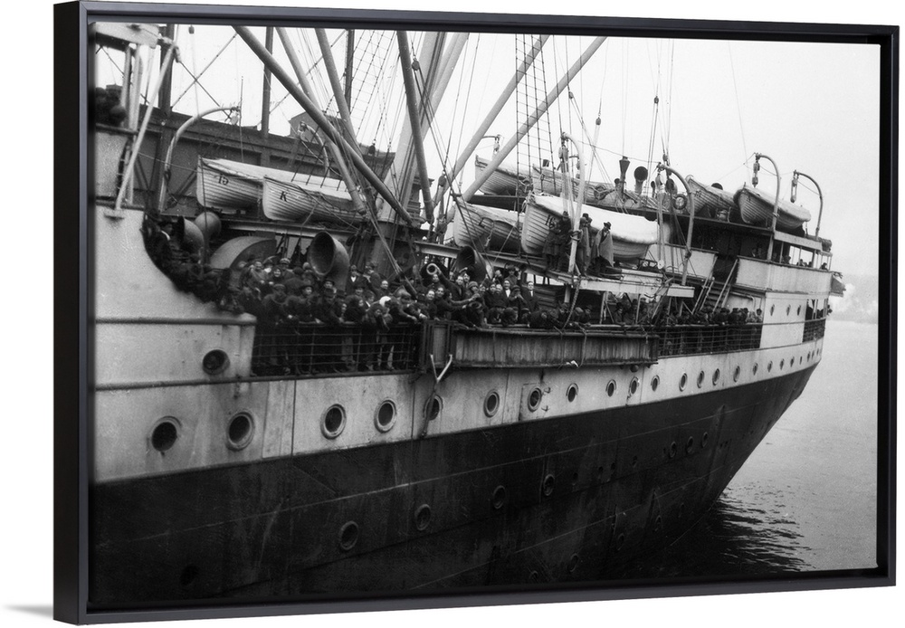 <p>Italian immigrants arriving at Ellis Island aboard the S.S. Regina d'Italia. Photograph, 1921.</p>