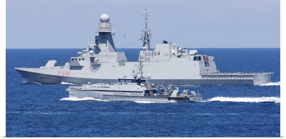 <p>Italian Navy FREMM frigate Martinengo and the patrol boat Monte Cimone underway.</p>