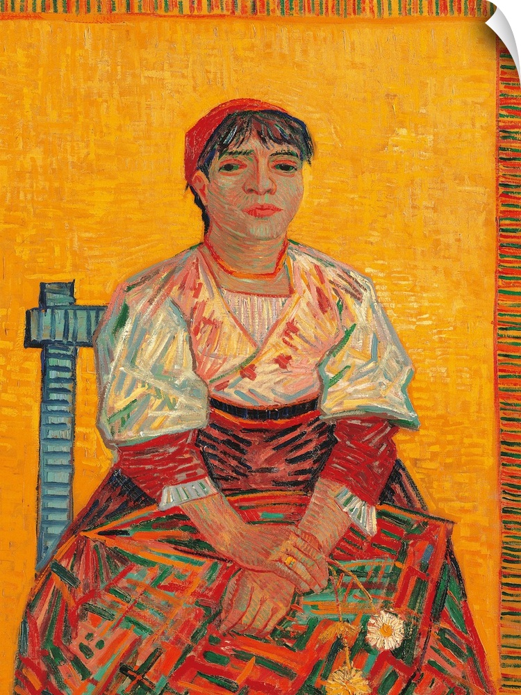 <p>The Italian Woman, by Vincent Van Gogh, 1887, 19th Century, oil on canvas, cm 81 x 60 - France, Ile de France, Paris, Muse dOrsay, RF1965-14. All. The Italian woman portrait of Agostina Segatori chair orange red yellow frame skirt shirt flower. (251257) E</p>