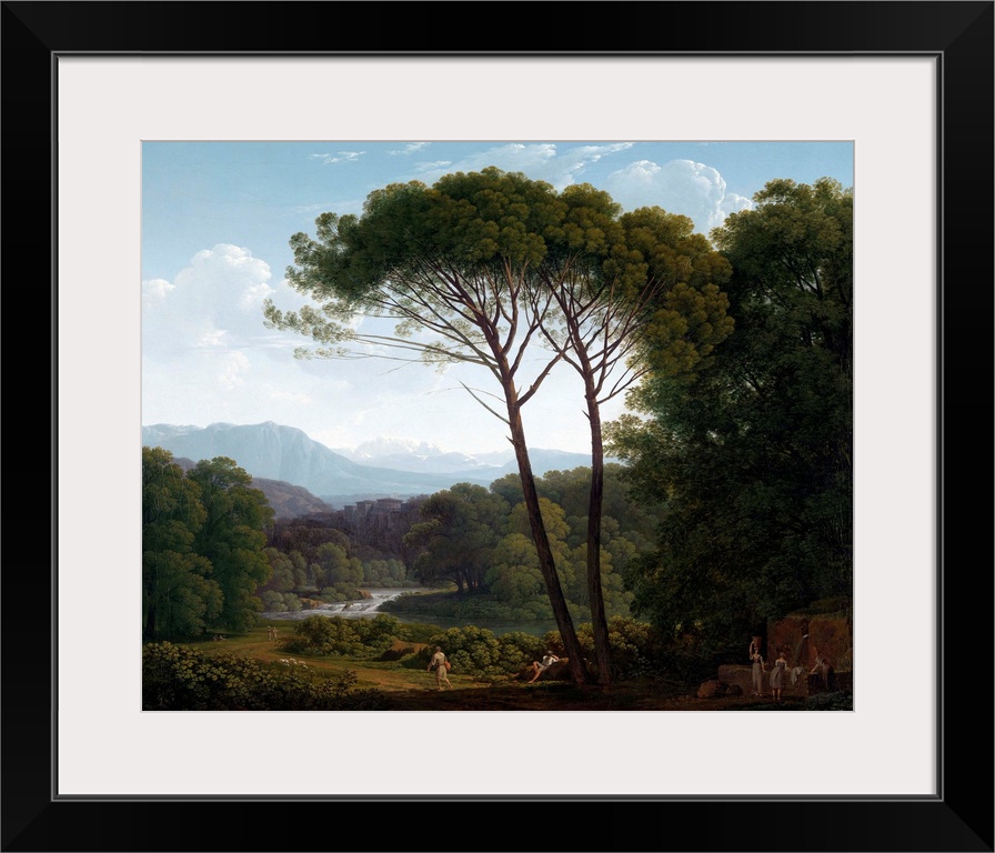 <p>Italianate Landscape with Pines, by Hendrik Voogd, 1795 Dutch painting, oil on canvas. Landscape with clear forms, space, and clear atmosphere painted in Italy by the Dutch artist. It echoes earlier landscapes of the 17th century.</p>