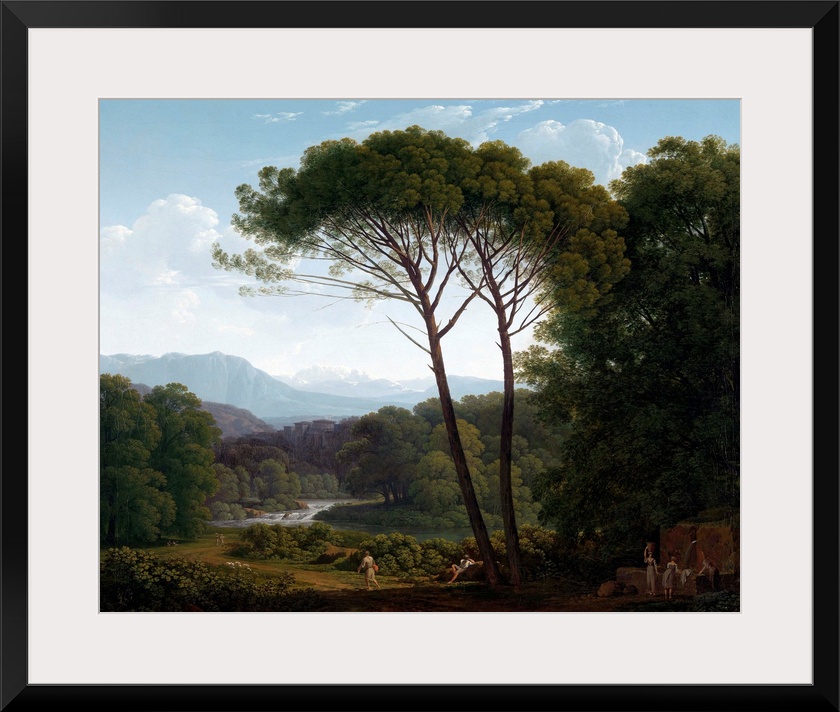 <p>Italianate Landscape with Pines, by Hendrik Voogd, 1795 Dutch painting, oil on canvas. Landscape with clear forms, space, and clear atmosphere painted in Italy by the Dutch artist. It echoes earlier landscapes of the 17th century.</p>