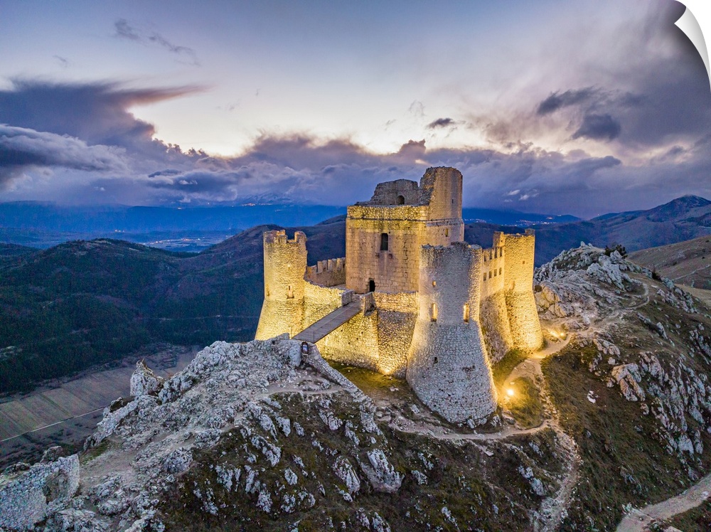 <p>Italy, Abruzzo, L'Aquila district, Gran Sasso National Park, Calascio, Apennines, Castle and remains of ancient medieval village of Rocca Calascio.</p>