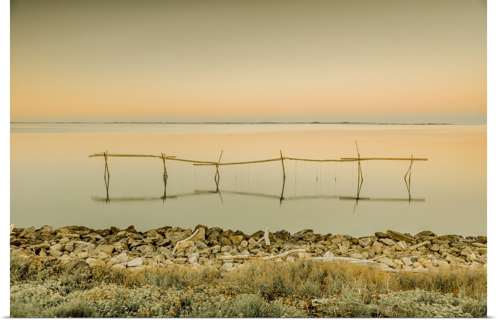 <p>Italy, Veneto, Rovigo district, Mediterranean sea, Adriatic sea, Venetian Lagoon, Adriatic Coast, Sacca degli Scardovari lagoon and structures for mussel cultivation.</p>