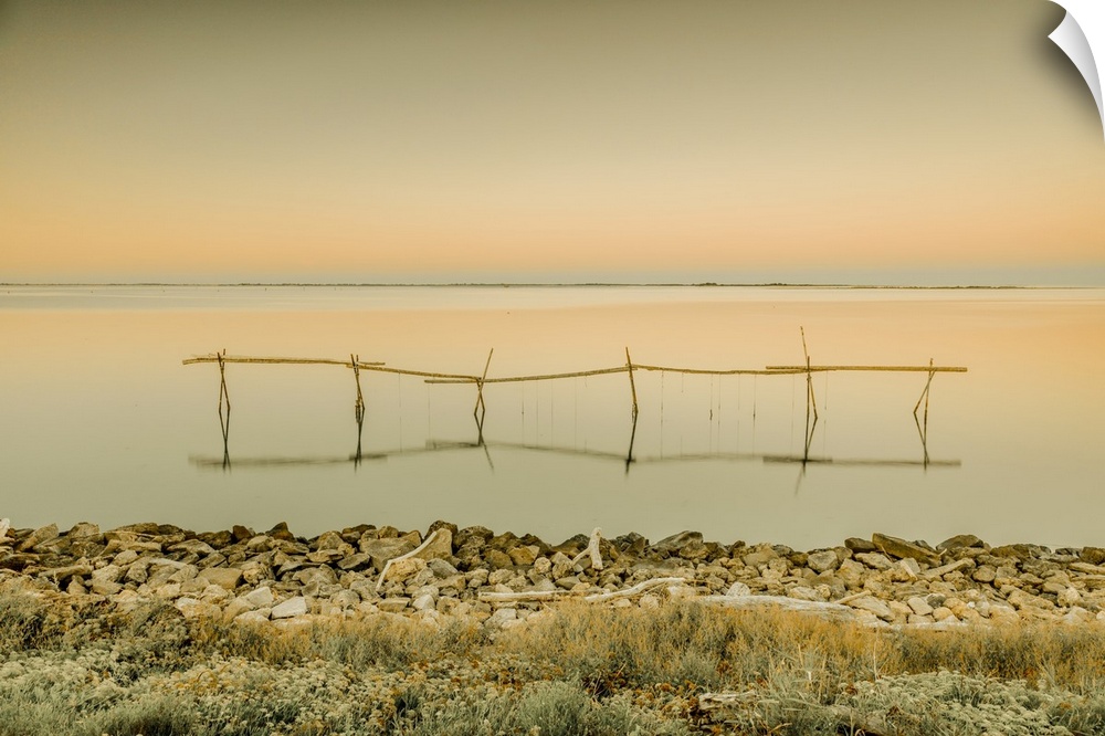 <p>Italy, Veneto, Rovigo district, Mediterranean sea, Adriatic sea, Venetian Lagoon, Adriatic Coast, Sacca degli Scardovari lagoon and structures for mussel cultivation.</p>