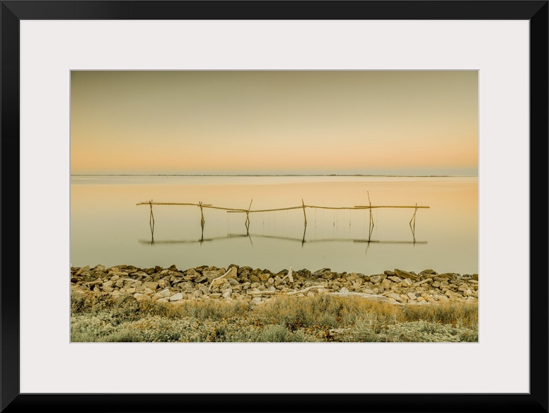 <p>Italy, Veneto, Rovigo district, Mediterranean sea, Adriatic sea, Venetian Lagoon, Adriatic Coast, Sacca degli Scardovari lagoon and structures for mussel cultivation.</p>