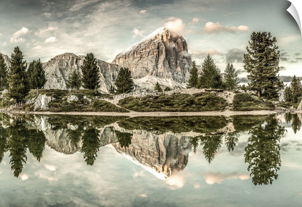 <p>Italy, Veneto, Belluno district, Alps, Dolomites, Tofana, Tofane, Cadore, Cortina d'Ampezzo, Limides or Limedes lake, Tofana.</p>