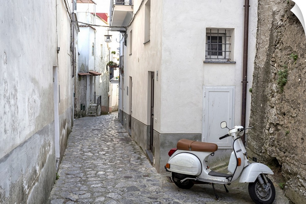 <p>Italy, Amalfi Coast, Ravello. Vespa scooter in the old town.</p>