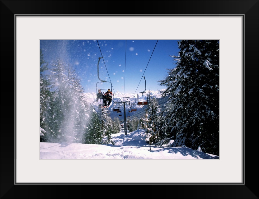 <p>Italy, Aosta Valley, Alps, Aosta district, Pila, Gressan, winter season, Pila ski station, the ski lift and Grand Combin mountain seen in the background</p>