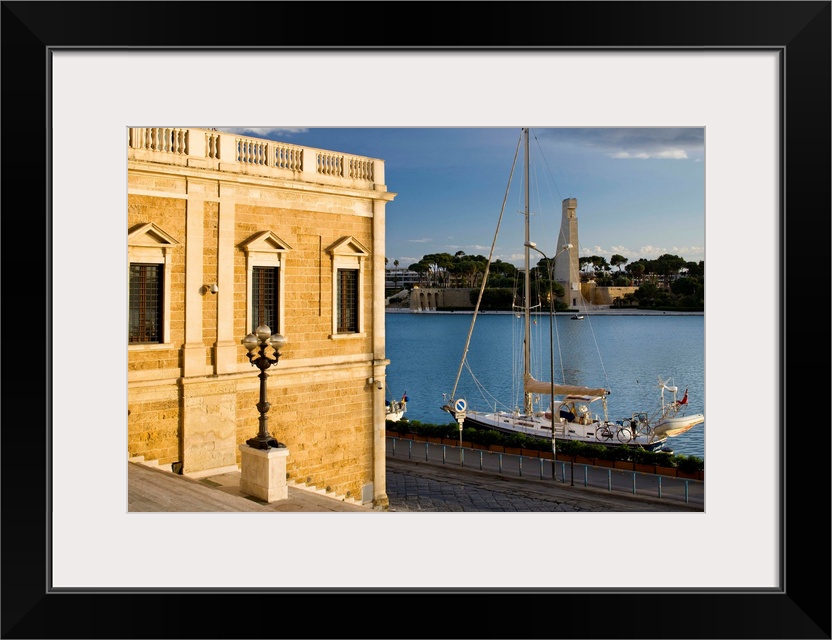 <p>Italy, Apulia, Mediterranean sea, Adriatic Coast, Brindisi, View of Sailor Monument from the Romans columns stairs</p>