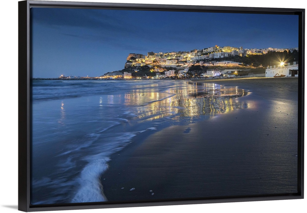 <p>Italy, Apulia, Mediterranean sea, Adriatic sea, Adriatic Coast, Foggia district, Gargano, Peschici, Gulf of Peschici at dusk.</p>