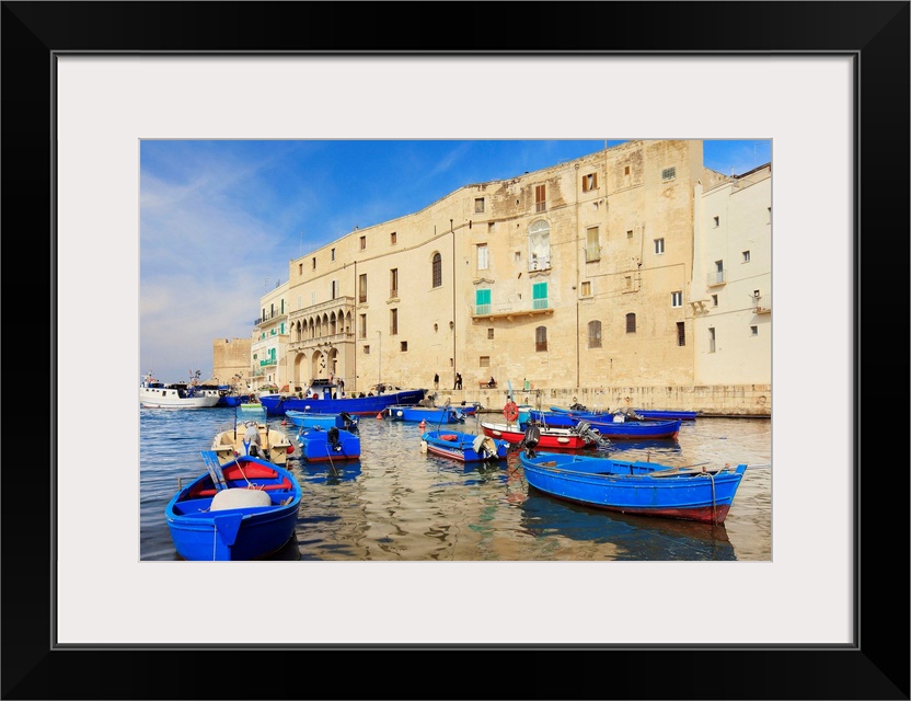<p>Italy, Apulia, Monopoli, Fishing boats along the harbor.</p>