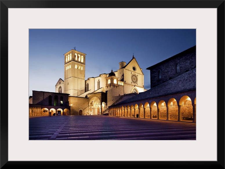<p>Italy, Umbria, Perugia district, Assisi, Basilica of San Francesco, San Francesco Basilica at dusk.</p>