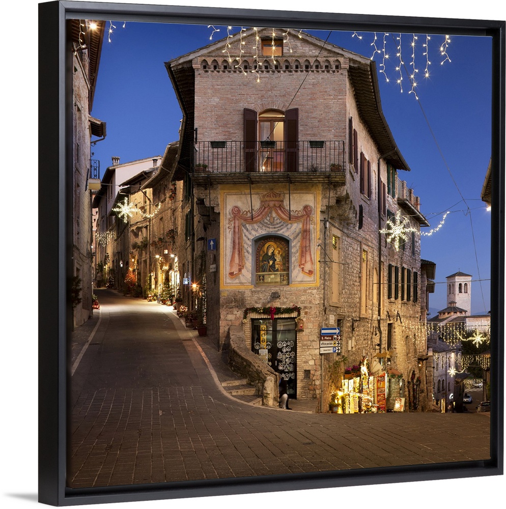<p>Italy, Umbria, Perugia district, Assisi, Town decorated for Christmas.</p>