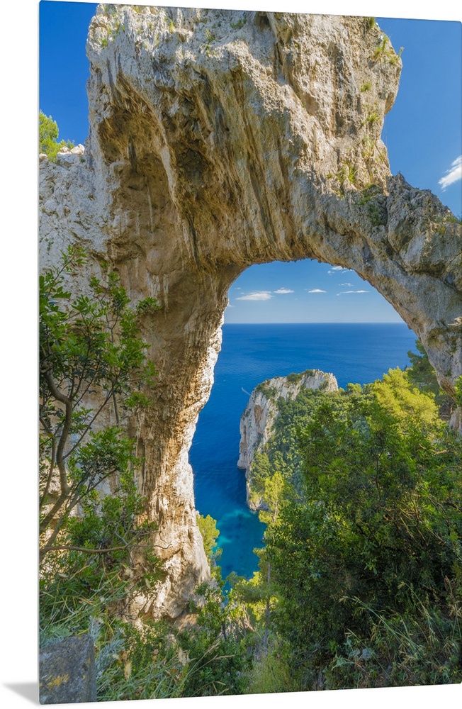 <p>Italy, Campania, Napoli district, Capri, Anacapri, Mediterranean sea, Tyrrhenian sea, Tyrrhenian coast, The Arco Naturale is a natural arch on the east coast of the island</p>