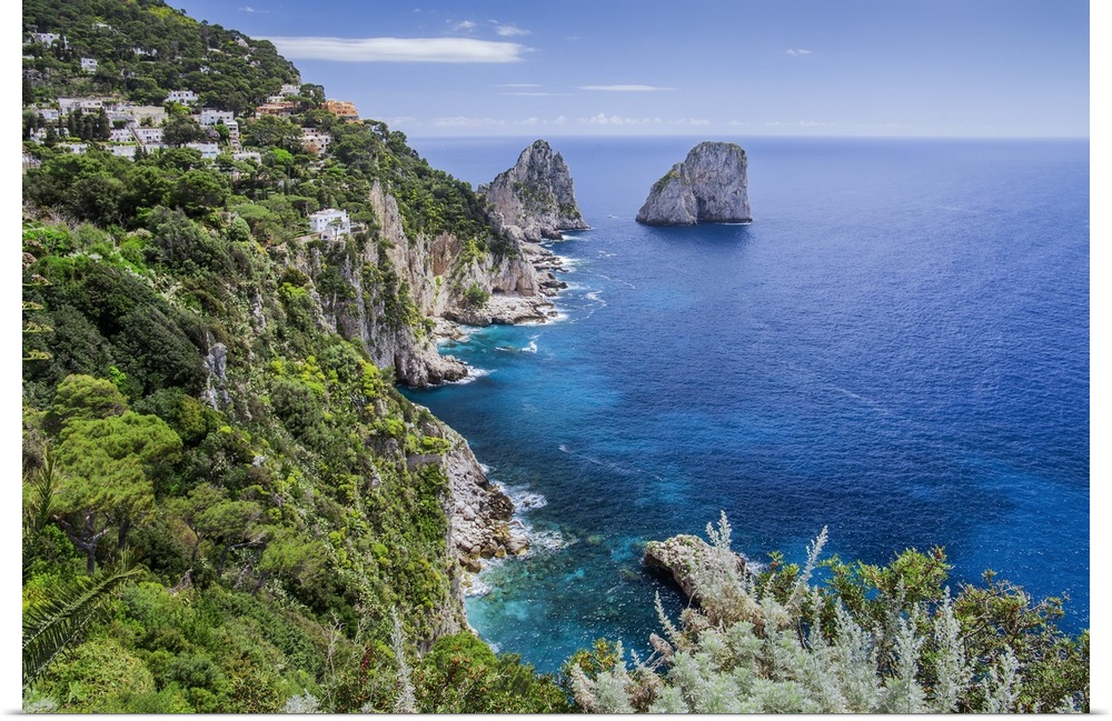 <p>Italy, Campania, Napoli district, Capri, Punta Tragara, Tyrrhenian sea, Tyrrhenian coast, South coast with the Faraglioni rocks.</p>