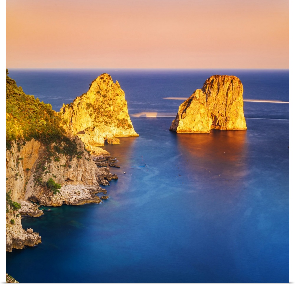 <p>Italy, Campania, Mediterranean sea, Tyrrhenian sea, Tyrrhenian coast, Napoli district, Capri, Punta Tragara, Belvedere, Faraglioni</p>