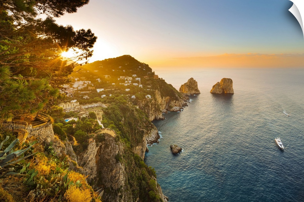 <p>Italy, Campania, Mediterranean sea, Tyrrhenian sea, Tyrrhenian coast, Napoli district, Capri, Punta Tragara, Belvedere, Faraglioni</p>