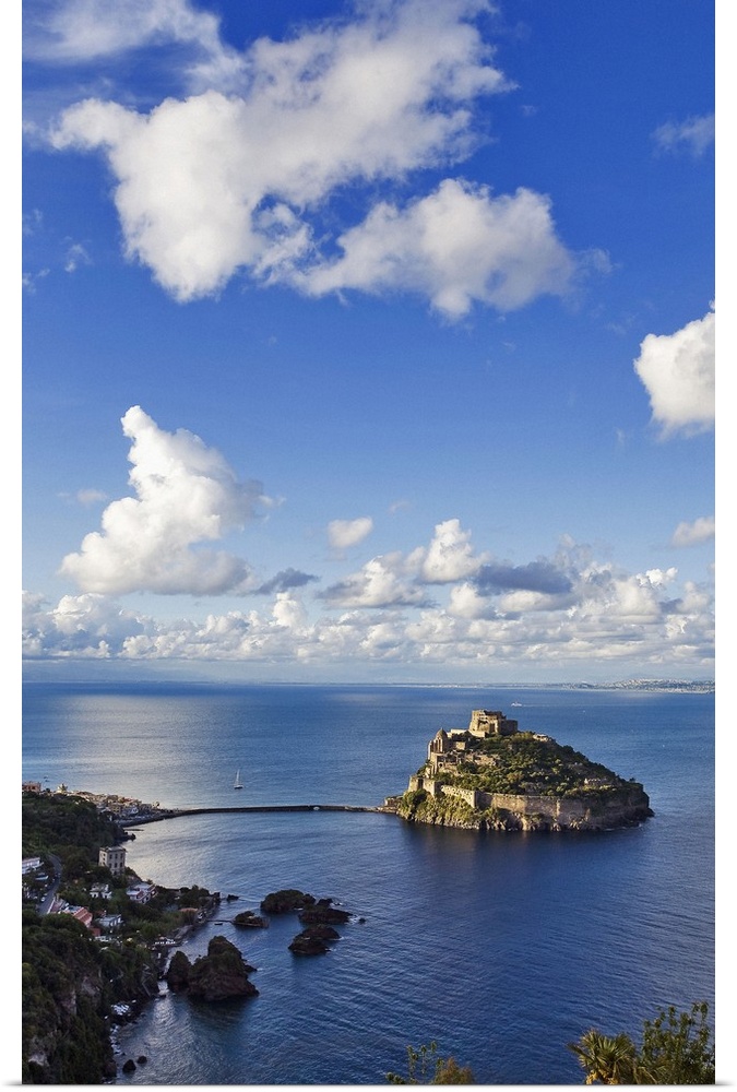 <p>Italy, Campania, Mediterranean sea, Tyrrhenian coast, Napoli district, Ischia Island, Ischia Ponte, Aragonese castle with Sant'Anna rocks</p>