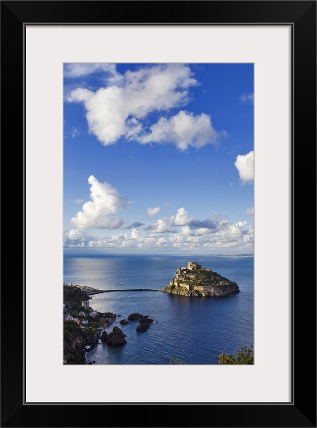<p>Italy, Campania, Mediterranean sea, Tyrrhenian coast, Napoli district, Ischia Island, Ischia Ponte, Aragonese castle with Sant'Anna rocks</p>