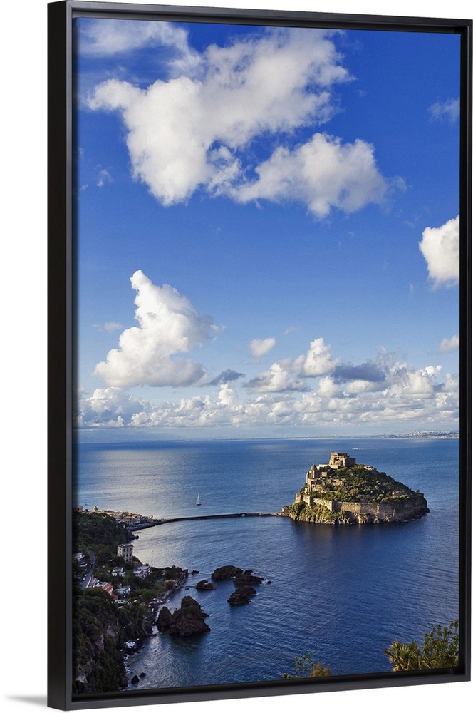 <p>Italy, Campania, Mediterranean sea, Tyrrhenian coast, Napoli district, Ischia Island, Ischia Ponte, Aragonese castle with Sant'Anna rocks</p>