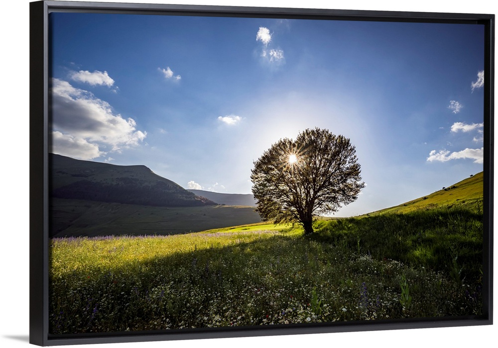 <p>Italy, Castelluccio, Piano Grande. Backlit tree at sunset. Credit: Jim Nilsen</p>