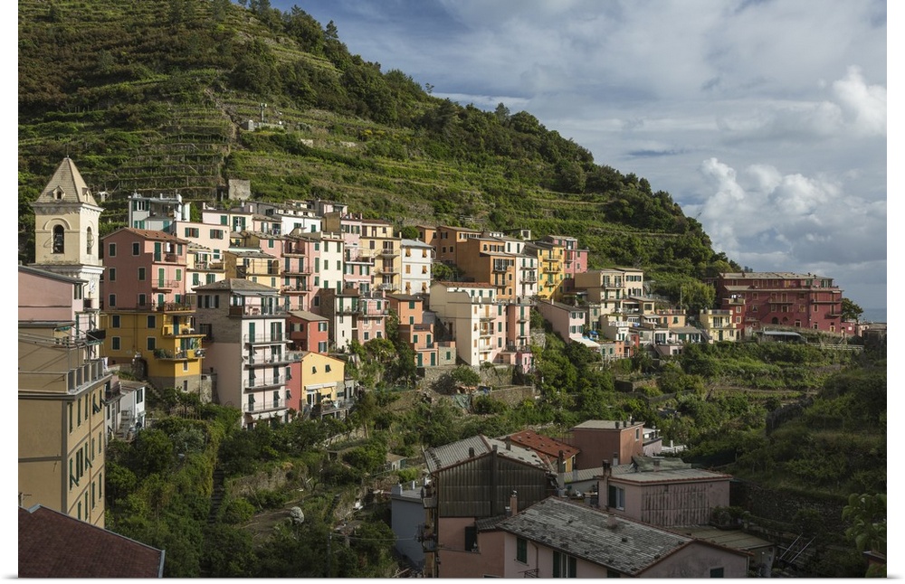 <p>Italy, Cinque Terre, Manarola. View of housing amidst the steep hillsides.</p>