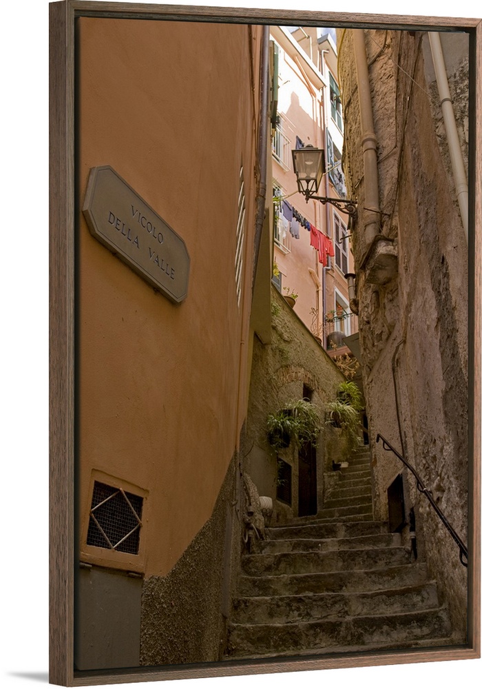 <p>Europe, Italy, Cinque Terre, Riomaggiore. Steep steps between buildings.</p>