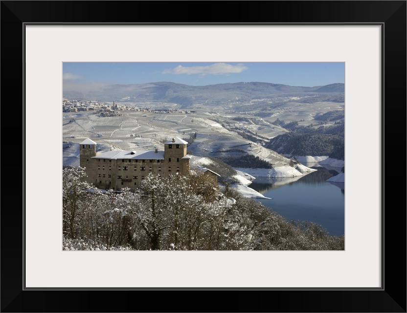 <p>Italy, Trentino-Alto Adige, Alps, Trento district, Trentino, Val di Non, Cles, Cles castle and Santa Giustina lake, Revo village in the background.</p>
