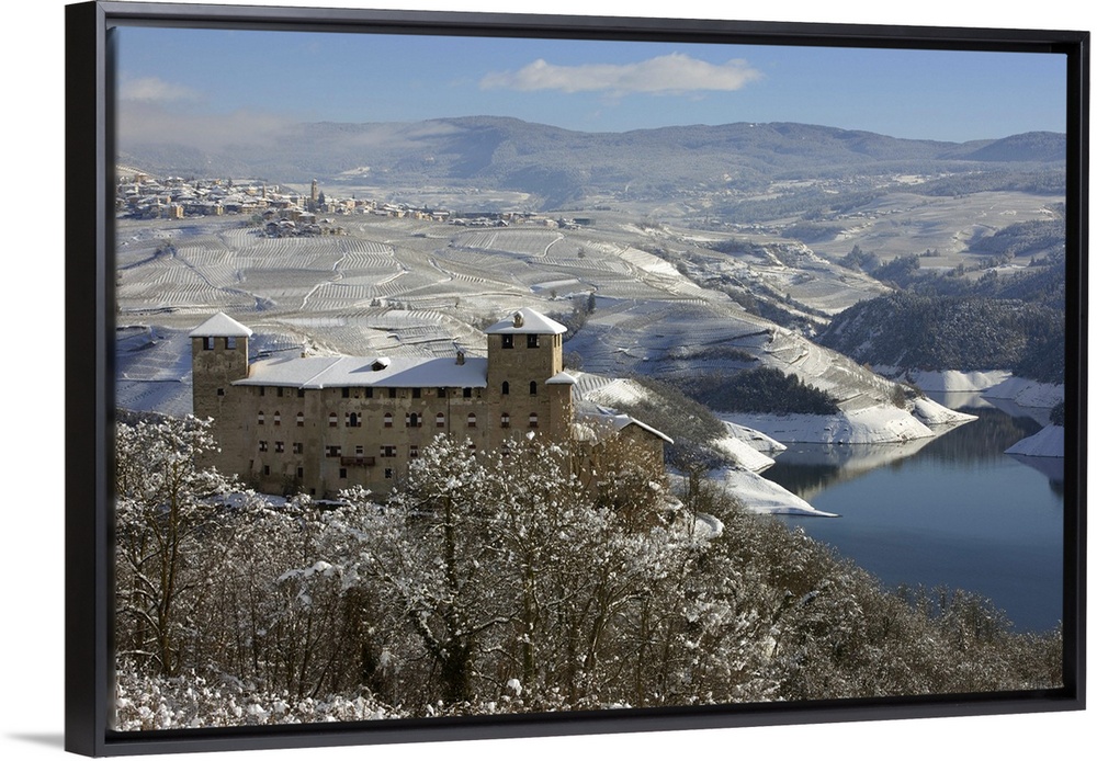 <p>Italy, Trentino-Alto Adige, Alps, Trento district, Trentino, Val di Non, Cles, Cles castle and Santa Giustina lake, Revo village in the background.</p>