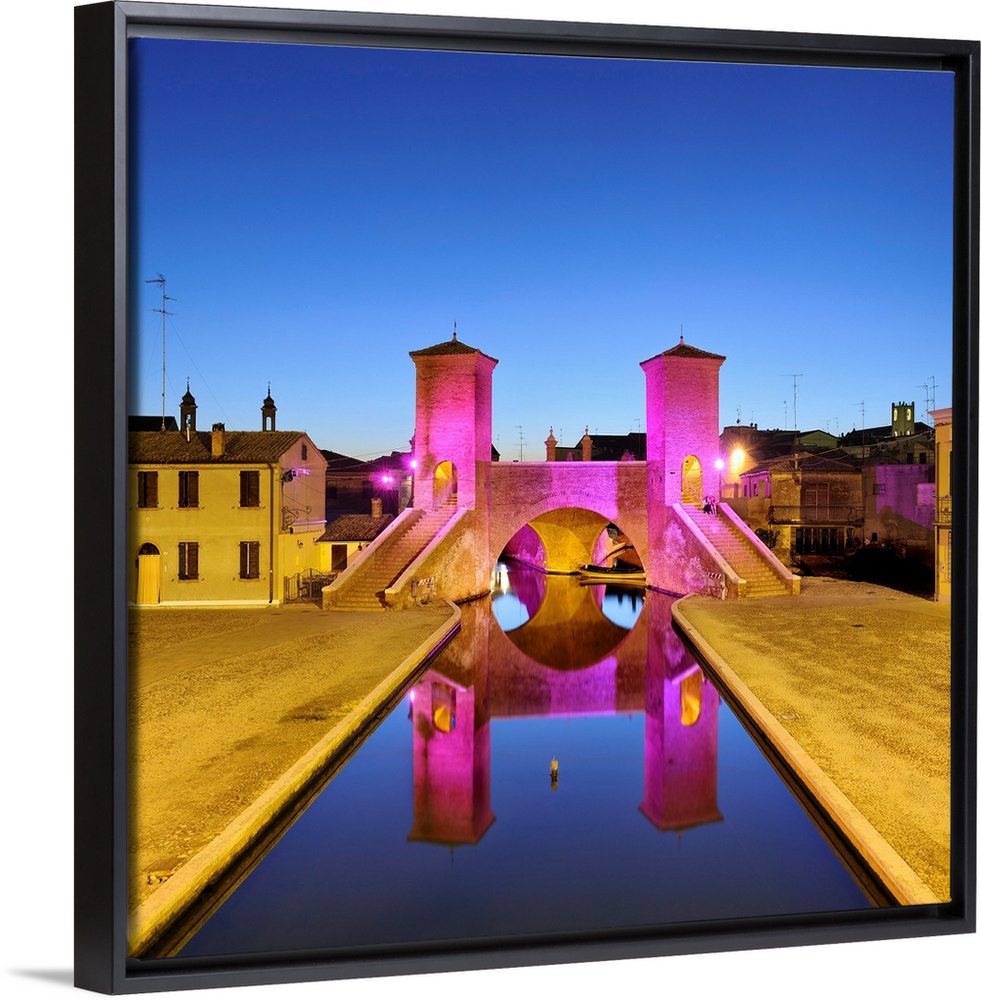 <p>Italy, Emilia-Romagna, Ferrara district, Parco del Delta del Po, Comacchio, Triple-bridge, Ponte dei Trepponti, Pentarco, Ponte Pallotta, 1638 Luca Danese architect,.</p>