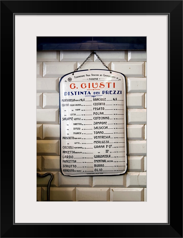 <p>Italy, Italia, Emilia-Romagna, Modena, Giusti delicatessen shop, price list</p>
