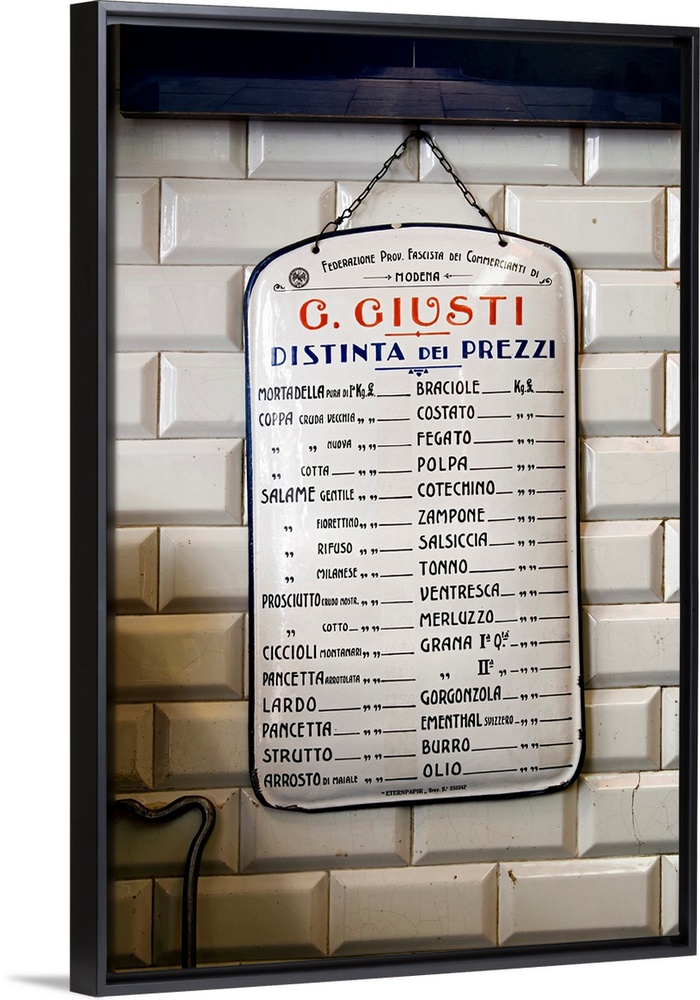 <p>Italy, Italia, Emilia-Romagna, Modena, Giusti delicatessen shop, price list</p>