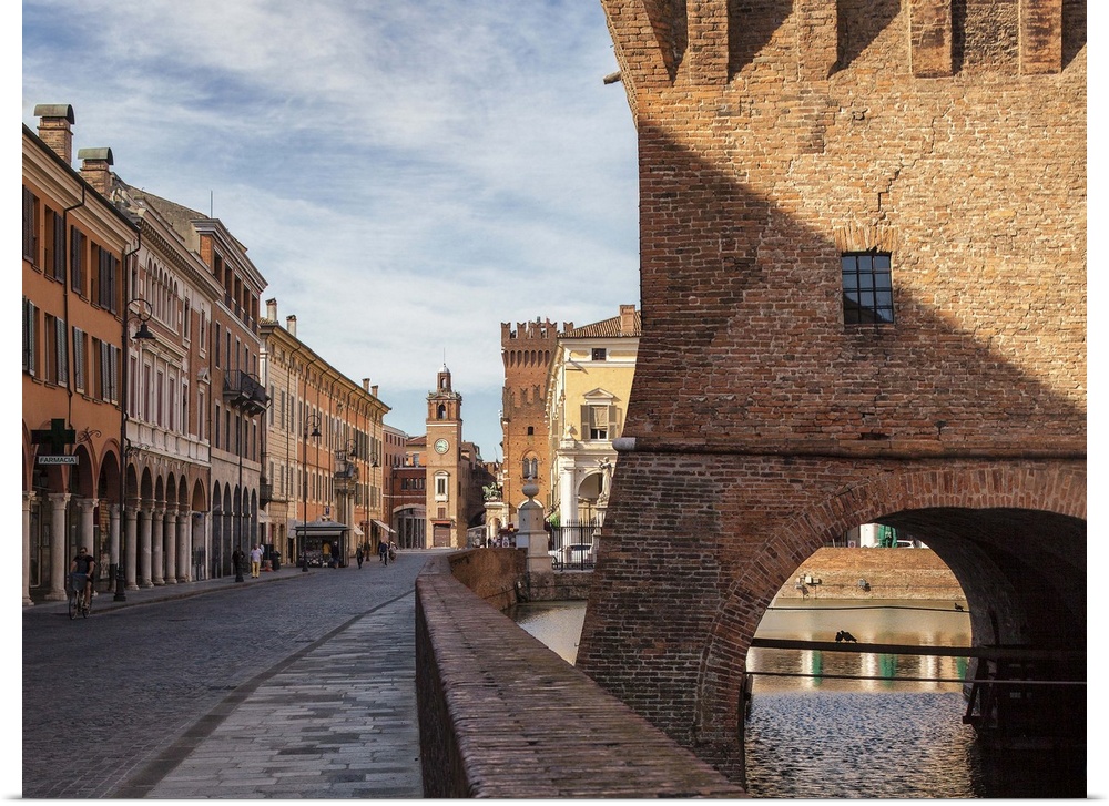 <p>Italy, Emilia-Romagna, Ferrara district, Ferrara, Martiri della Liberta street, view from the corner of Este Castle.</p>