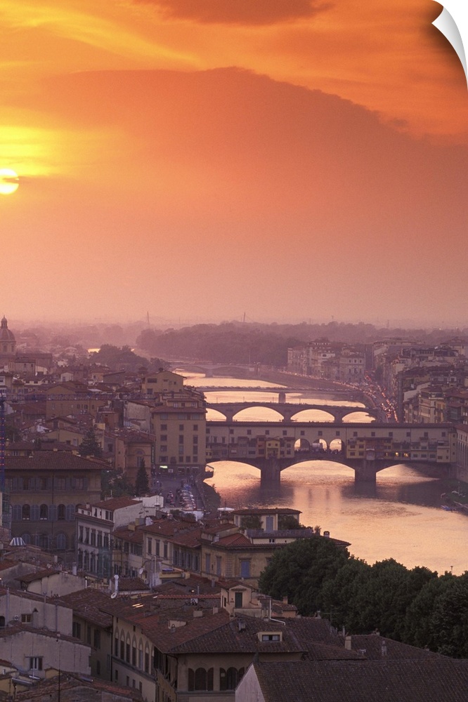 <p>Europe, Italy, Tuscanny, Florence. Ponte Vecchio Bridge at sunset, viewed from Piazza Michelangelo</p>