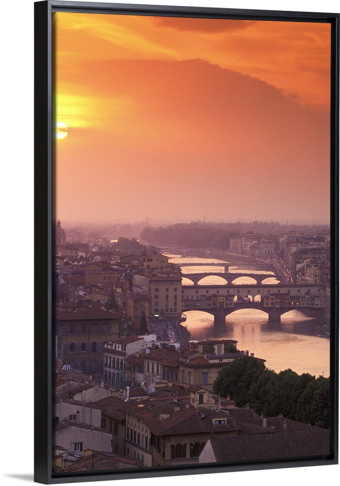 <p>Europe, Italy, Tuscanny, Florence. Ponte Vecchio Bridge at sunset, viewed from Piazza Michelangelo</p>