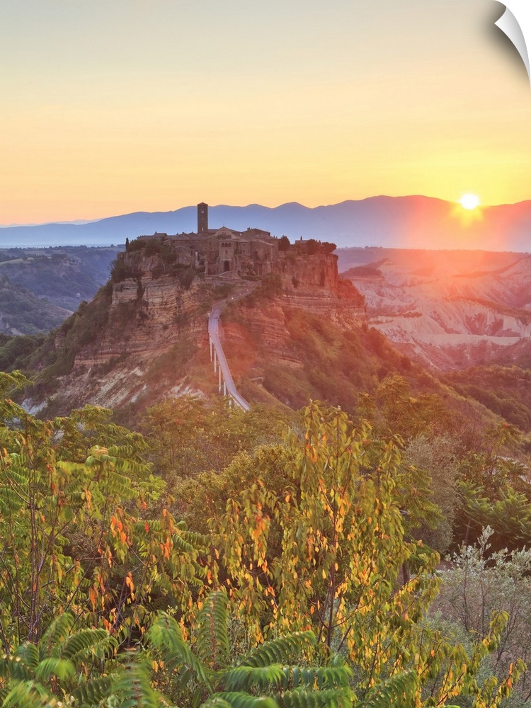 <p>Italy, Latium, Viterbo district, Civita di Bagnoregio, Overview of the village at sunrise</p>