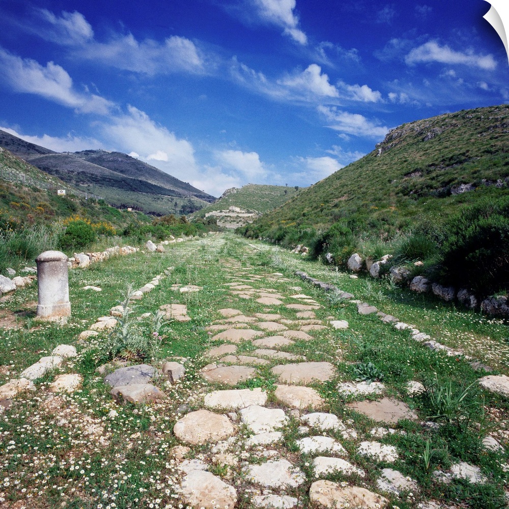 <p>Italy, Latium, Fondi, Via Appia Antica in Sant'Andrea valley towards Sant'Andrea fortification</p>