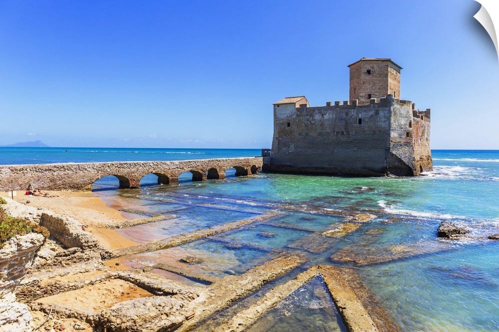 <p>Italy, Latium, Roma district, Nettuno, Mediterranean sea, Tyrrhenian sea, Tyrrhenian coast, Torre Astura, medieval castle on the sea.</p>