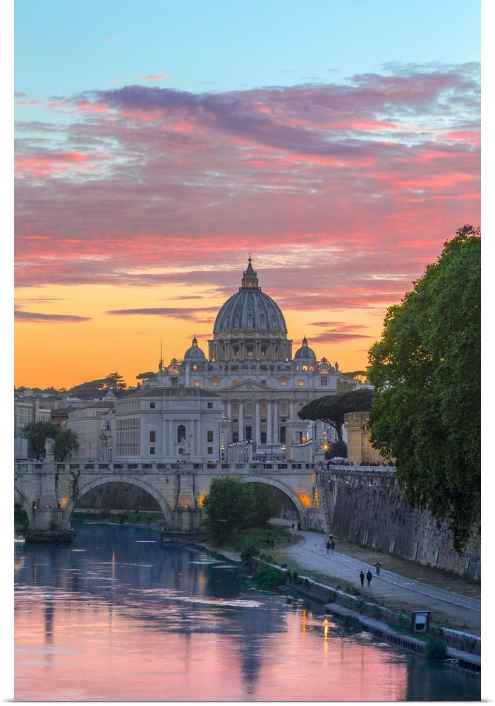 <p>Italy, Latium, Roma district, Rome, St Peter's Basilica, Basilica and Tevere river at sunset</p>