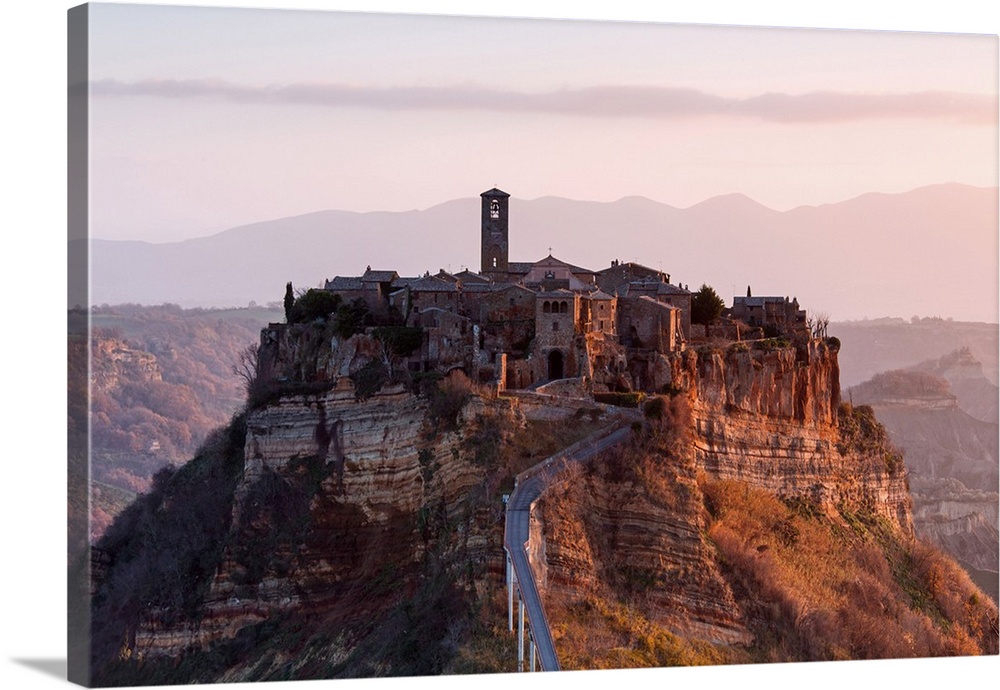 <p>Europe, Italy, Lazio, Viterbo district. Civita of Bagnoregio at dawn.</p>