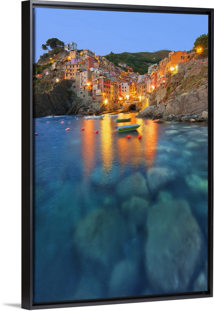 <p>Italy, Liguria, Ligurian sea, Ligurian Riviera, Parco Nazionale delle Cinque Terre, La Spezia district, Riviera di Levante, Cinque Terre, Riomaggiore at dusk.</p>
