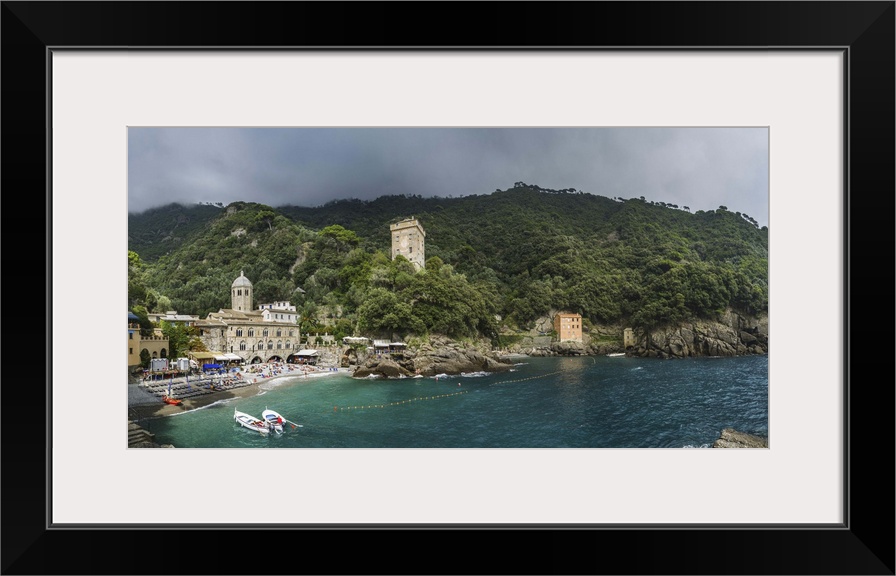 <p>Italy, Liguria, Mediterranean sea, Ligurian sea, Ligurian Riviera, Genova district, Riviera di Levante, Camogli, San Fruttuoso Abbey and the surrounding area.</p>