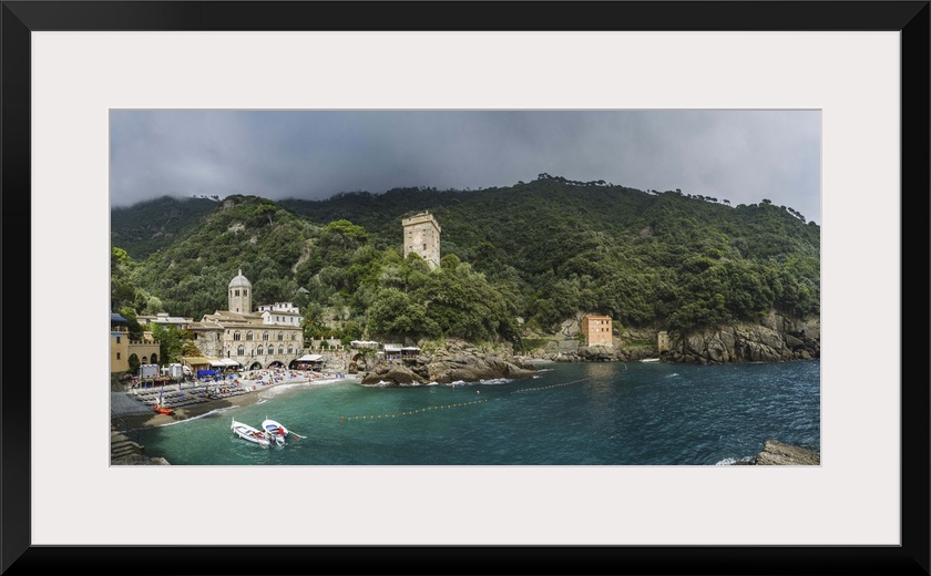 <p>Italy, Liguria, Mediterranean sea, Ligurian sea, Ligurian Riviera, Genova district, Riviera di Levante, Camogli, San Fruttuoso Abbey and the surrounding area.</p>