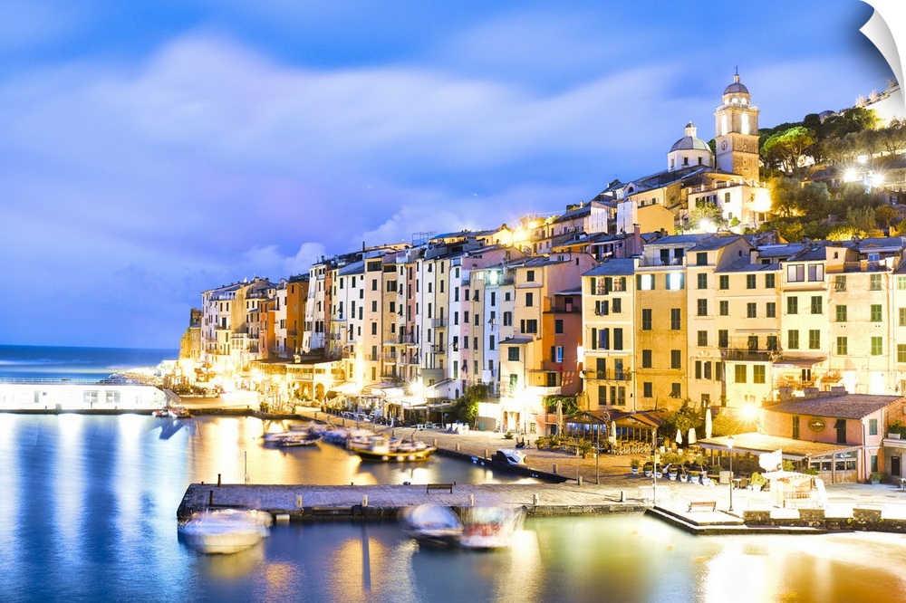 <p>Italy, Liguria, La Spezia district, Riviera di Levante, Portovenere, Mediterranean sea, Ligurian sea, Ligurian Riviera, View of the port at dawn.</p>
